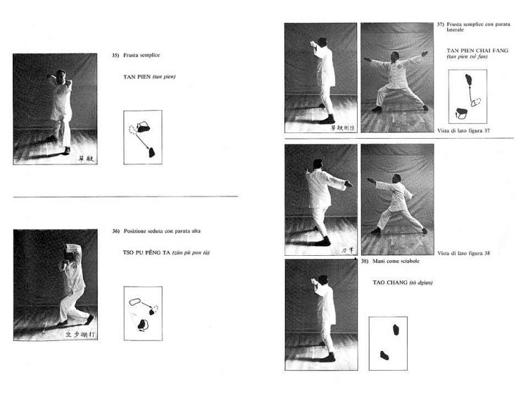 35. Kung Chien Pu – Tan Pien Ts’e Fang: Colpendo come una frusta, eseguire una parata laterale (mano dx) girandosi di 180° in dir S