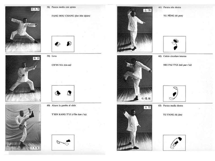 61. Hou Ting Pu – Yu Fang : Parata destra verso l’ esterno(girando il busto in dir N ; piede sx davanti al dx e rivolto verso l’ interno)